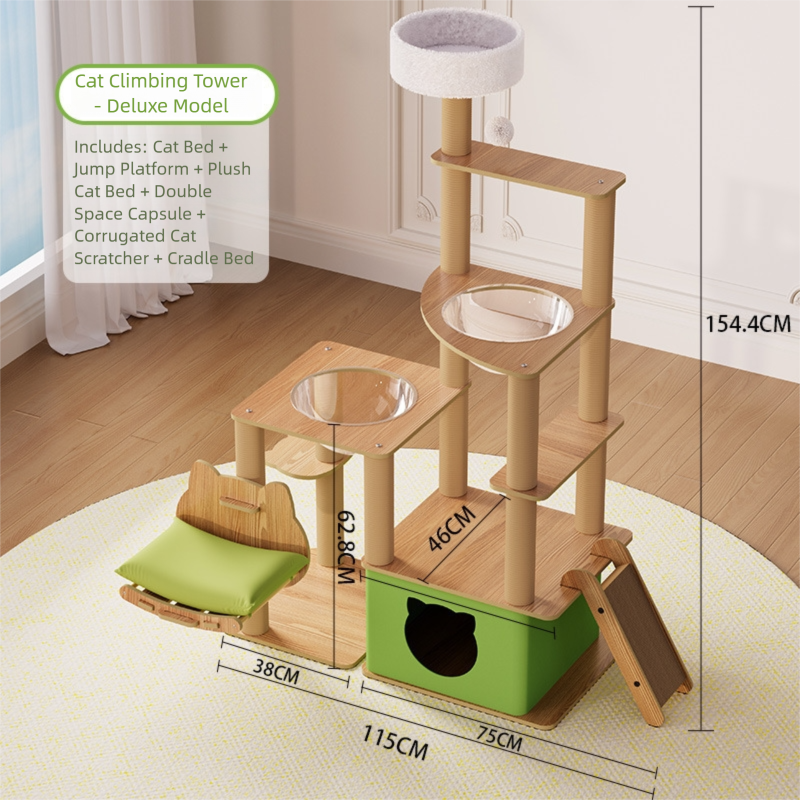 154CM Tall Wood Cat Tree, Multi-Level Deluxe Cat Tower