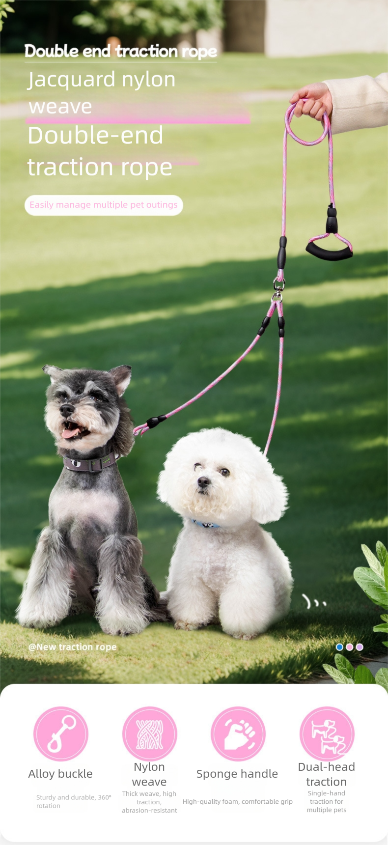 Double Dog Leash 1.3M, No Tangle Dual Leash Comfortable Padded Handles for 2 Dogs