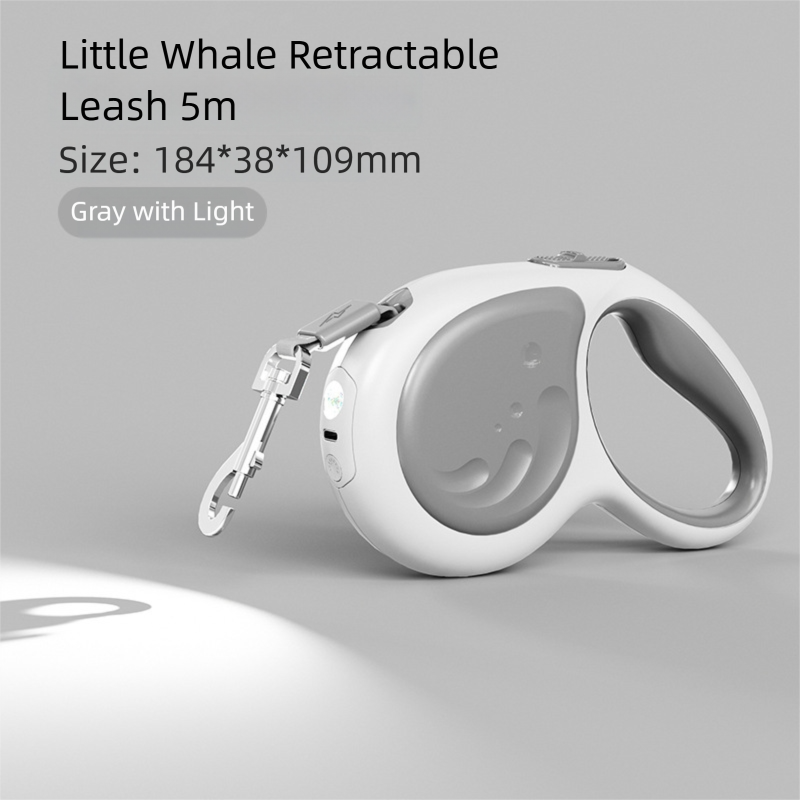 Tangle-Free Retractable Dog Leash With LED Light 5m Strong Reflective Nylon Rope One-Handed Control
